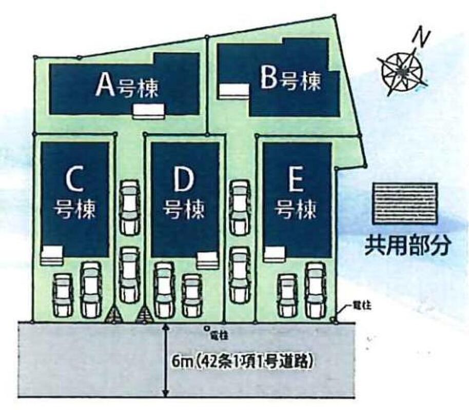 | 駐車場 | 2台 | 道路の幅員 | 道路幅:6m、アスファルト舗装、南側6m公道 |