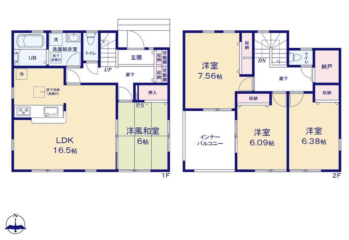 1号棟 間取り 4LDK 価格 3190万円 建物面積 114.26m2 土地面積 150.02m2 -