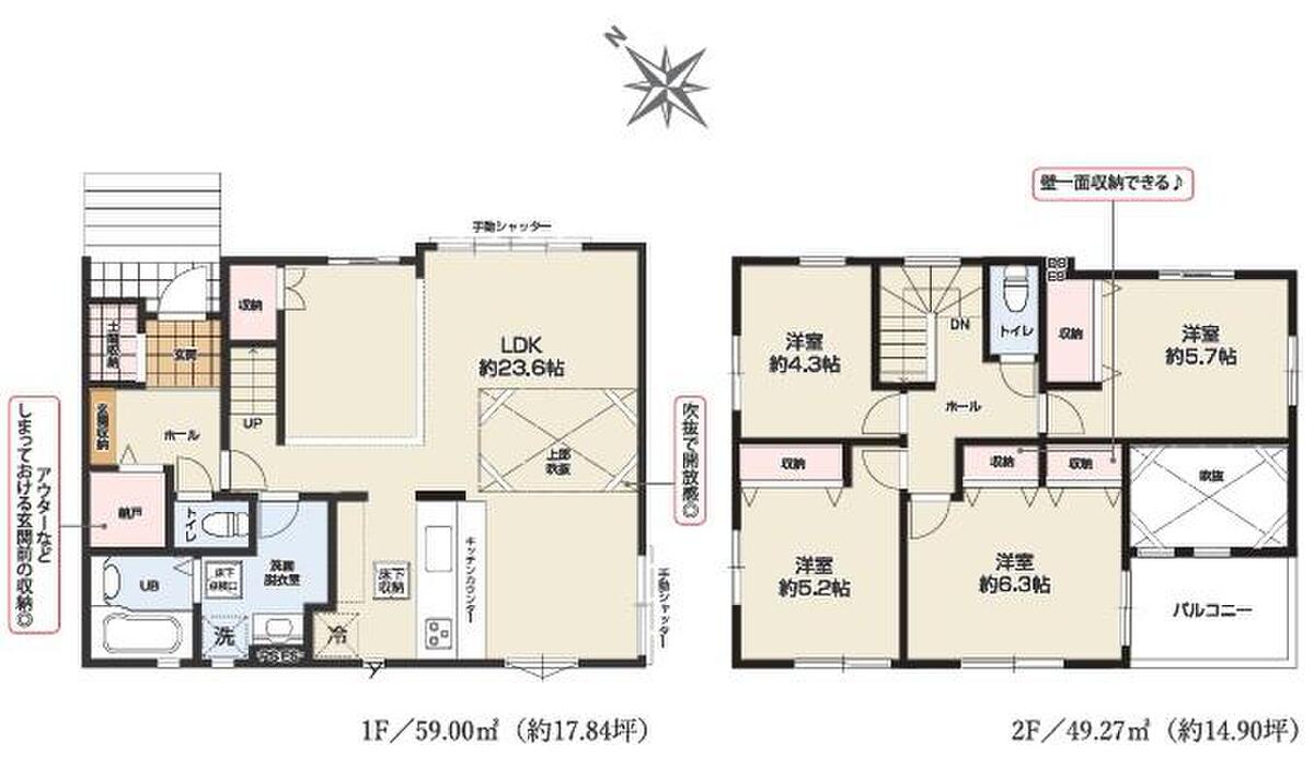 - ※完成予想図やCG合成画像は、門塀・植栽・庭・外観等、実際とは多少異なる場合があります。