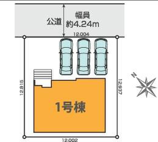 | 駐車場 | 3台 | 道路の幅員 | 道路幅:4.2m、アスファルト舗装、北東側約4.2m公道 |