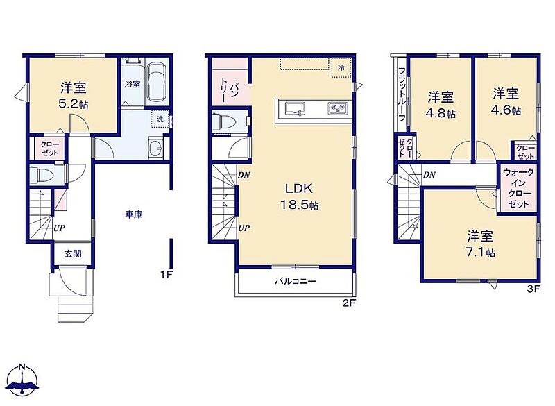 全居室フローリング、パントリー、WIC