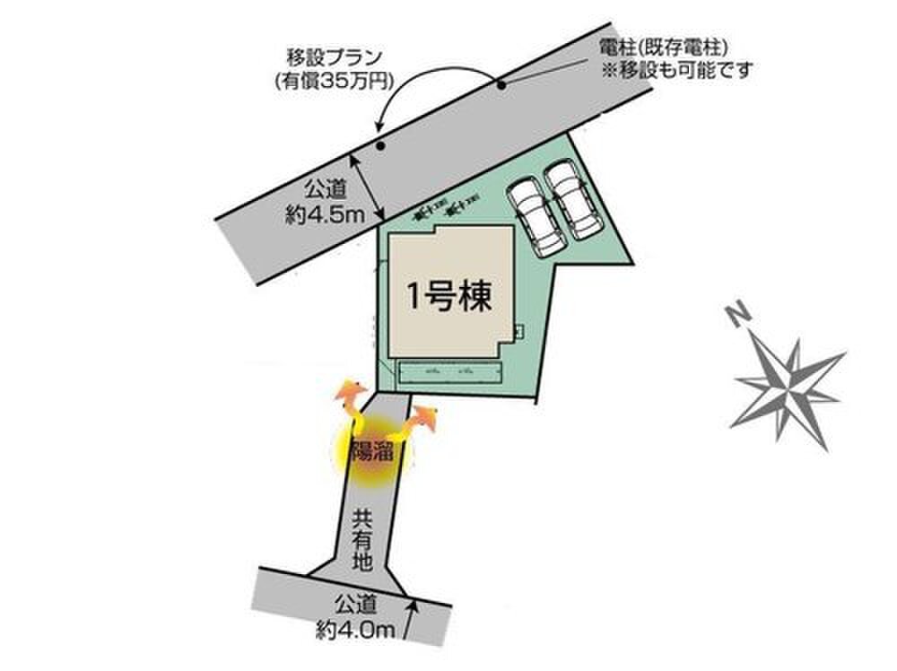 | 駐車場 | 2台 | 道路の幅員 | 道路幅:4m・4.5m、アスファルト舗装、南側4m公道、北側4.5m公道 |