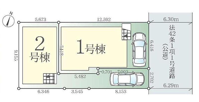 | 駐車場 | 1台 | 道路の幅員 | 道路幅:6.3m、アスファルト舗装、東側6.3m公道 |
