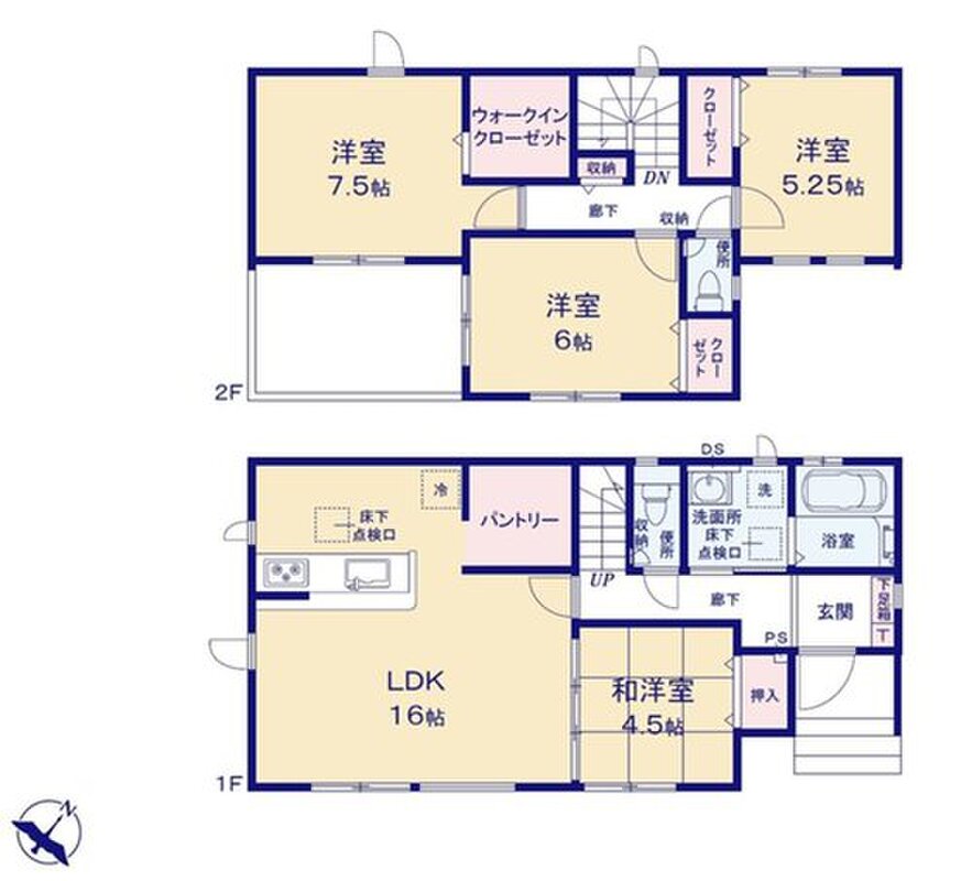 | 建物面積 | 99.16m2~102.26m2(29.99坪~30.93坪)(実測) | 土地面積 | 155.79m2~155.85m2(実測) |
