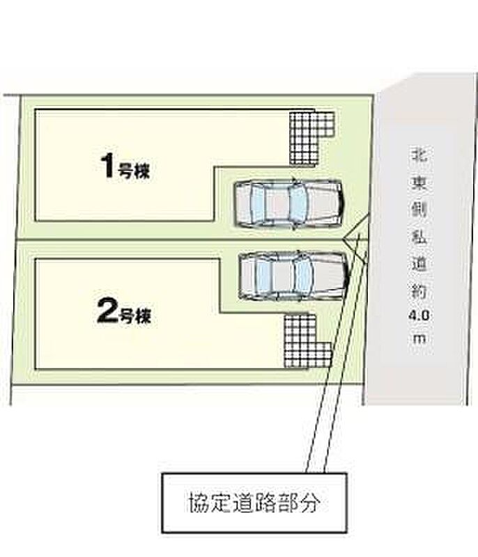 | 駐車場 | 1台 | 道路の幅員 | 道路幅:4m、アスファルト舗装、北東側4m私道 |