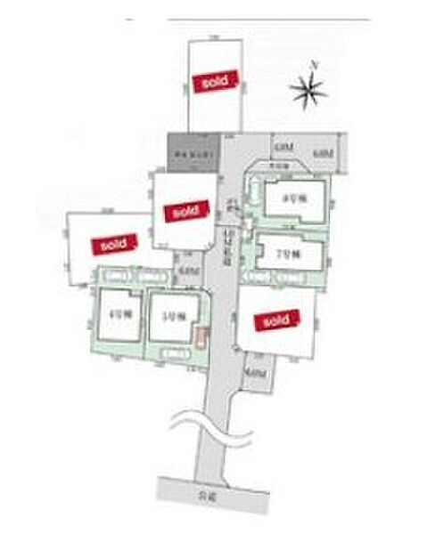 | 駐車場 | 2台 | 道路の幅員 | 道路幅:4m~6m、アスファルト舗装、分譲地内4m~6m私道 |