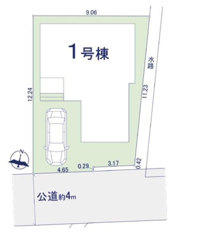| 駐車場 | 1台 | 道路の幅員 | 道路幅:4m、アスファルト舗装、南側4m公道 |