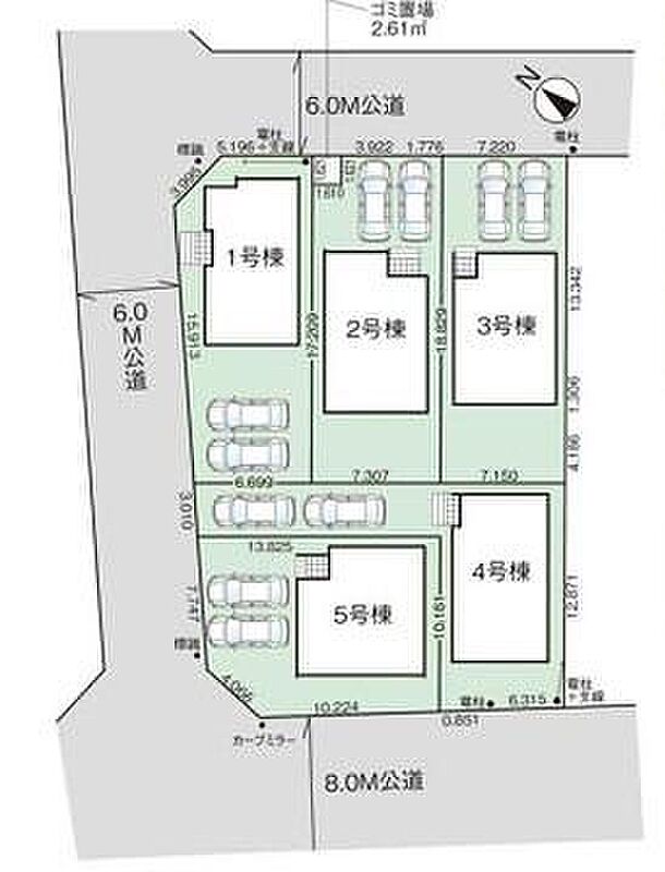 | 駐車場 | 2台 | 道路の幅員 | 道路幅:6m、アスファルト舗装、北東側6m公道、北西側6m公道 |