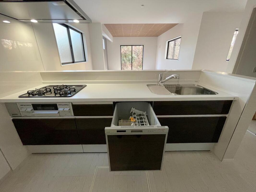 忙しい奥様の味方、後片付けもラクラクなビルトイン食洗機付き。洗い終わった食器の水切りや乾燥としても便利です。