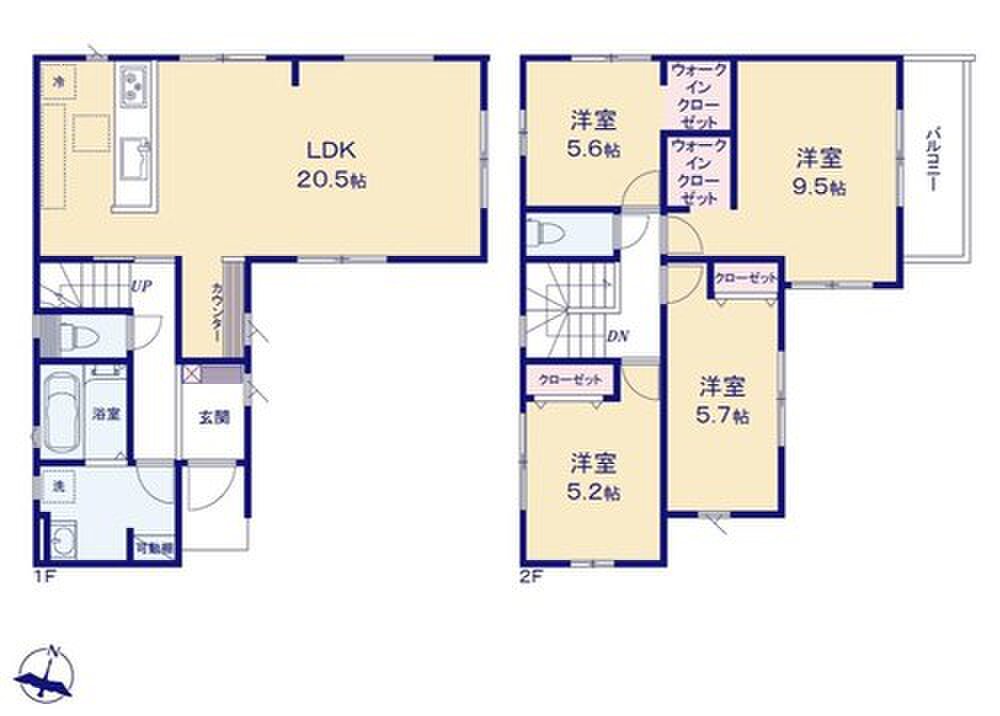 - 129.74m2・129.75m2(39.24坪・39.24坪)(実測)