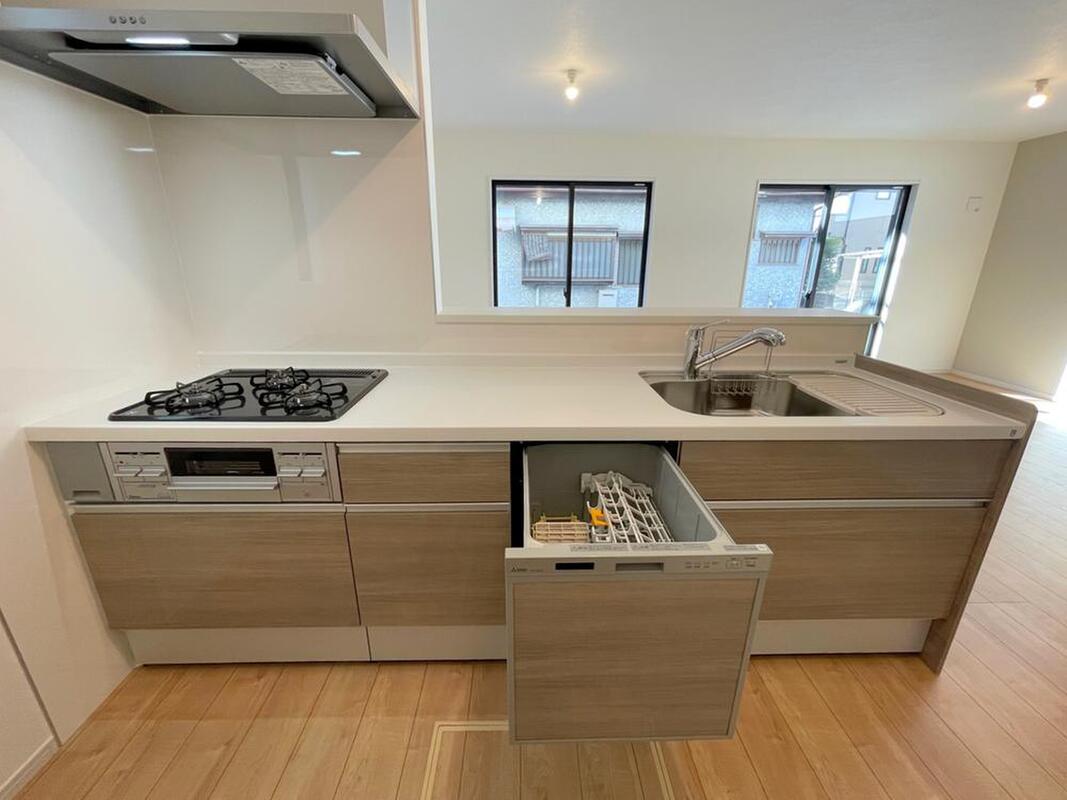 忙しい奥様の味方、後片付けもラクラクなビルトイン食洗機付き。洗い終わった食器の水切りや乾燥としても便利です。