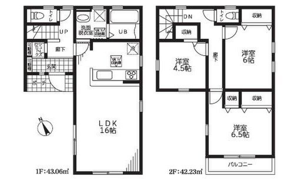 | 建物面積 | 85.29m2(25.80坪)(実測) | 土地面積 | 90.07m2(27.24坪)(実測) |