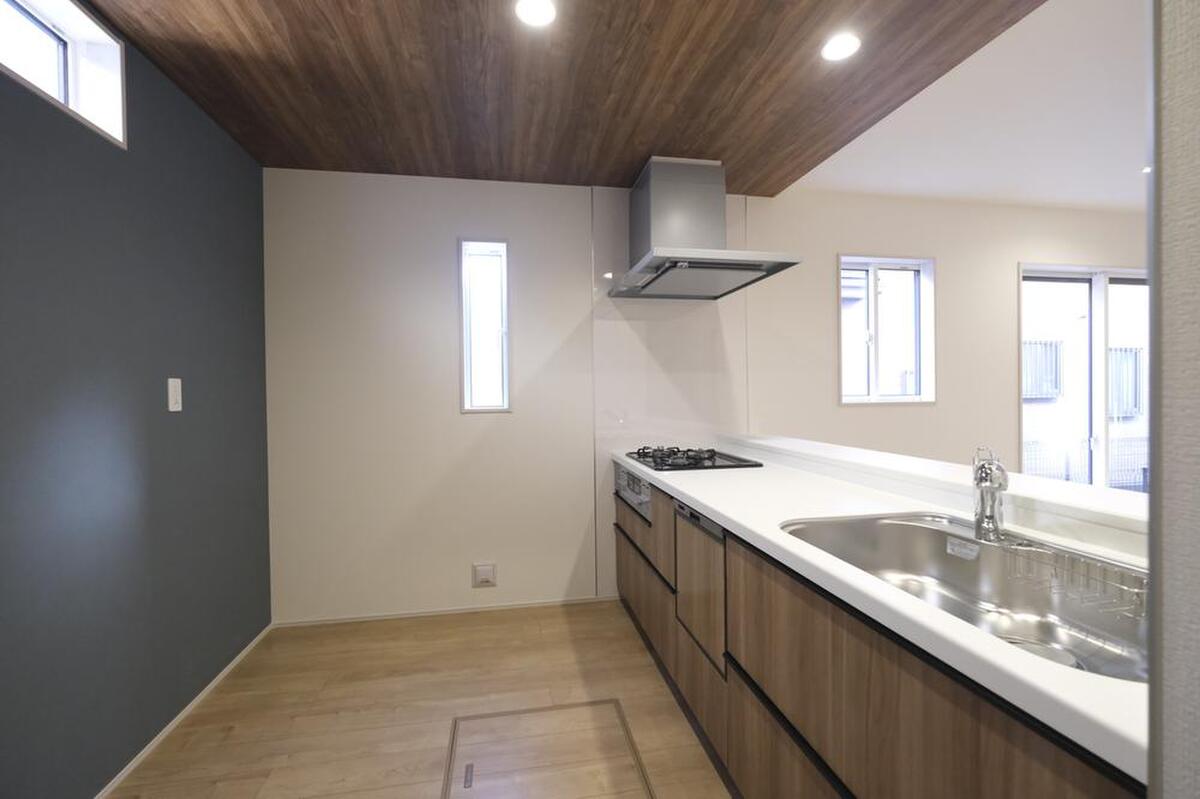 忙しい奥様の味方、後片付けもラクラクなビルトイン食洗機付き。洗い終わった食器の水切りや乾燥としても便利です。