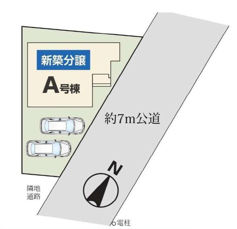 | 駐車場 | 2台 | 道路の幅員 | 道路幅:7m、アスファルト舗装、東側7m公道 |