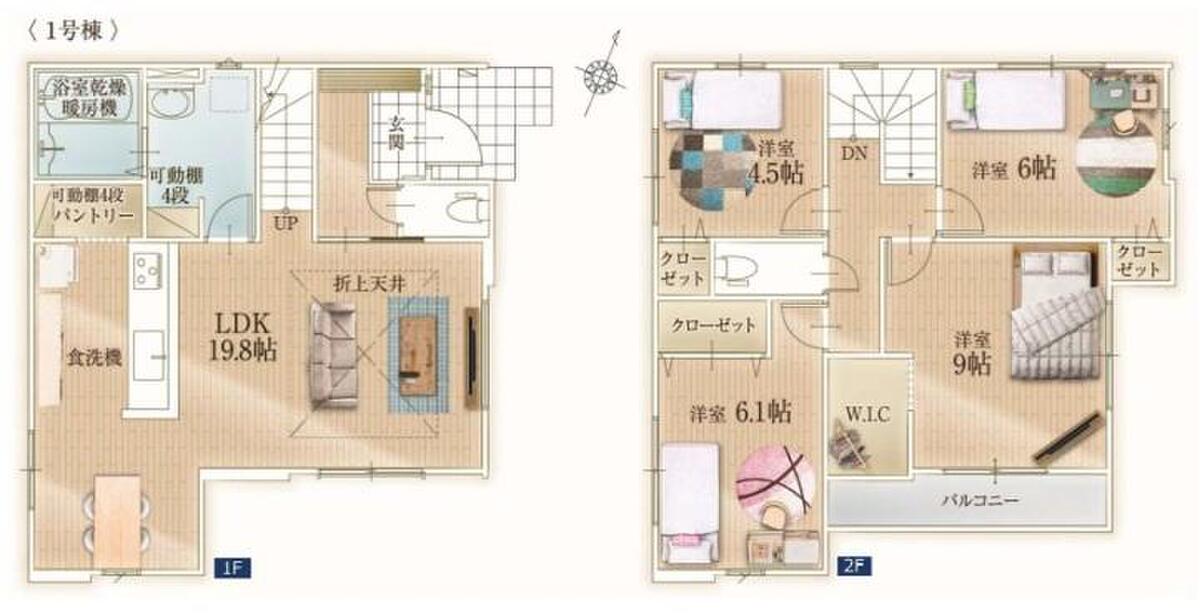 - ※完成予想図やCG合成画像は、門塀・植栽・庭・外観等、実際とは多少異なる場合があります。