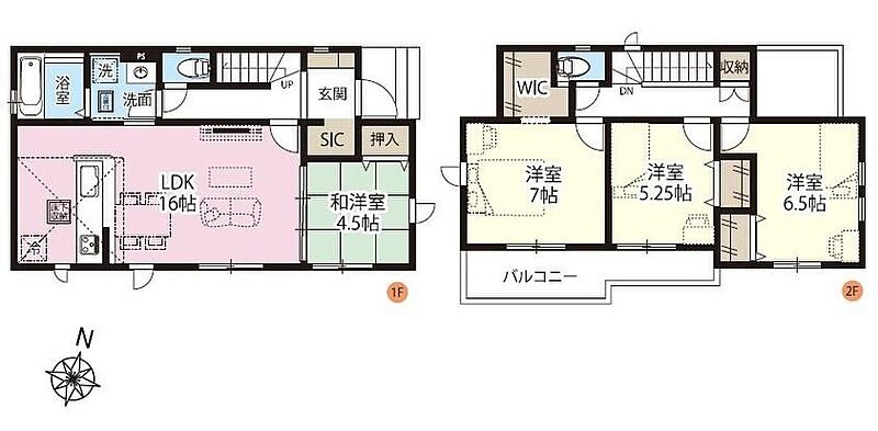 | 建物面積 | 97.3m2(29.43坪)(実測) | 土地面積 | 129.2m2・141.68m2(39.08坪・42.85坪)(実測) |