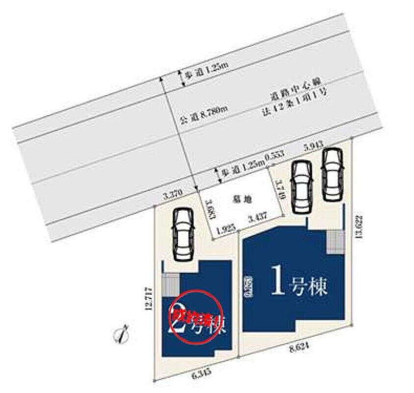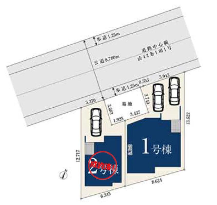 | 駐車場 | 2台 | 道路の幅員 | 道路幅:8.7m、アスファルト舗装、北西側8.78m公道 |
