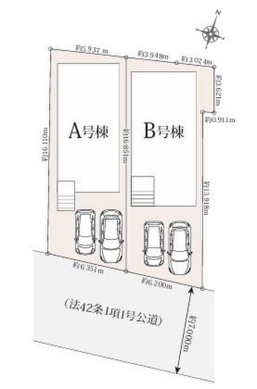 | 建物面積 | 93.36m2・96.05m2(28.24坪・29.05坪)(実測) | 土地面積 | 100.17m2・107.25m2(30.30坪・32.44坪)(実測) |