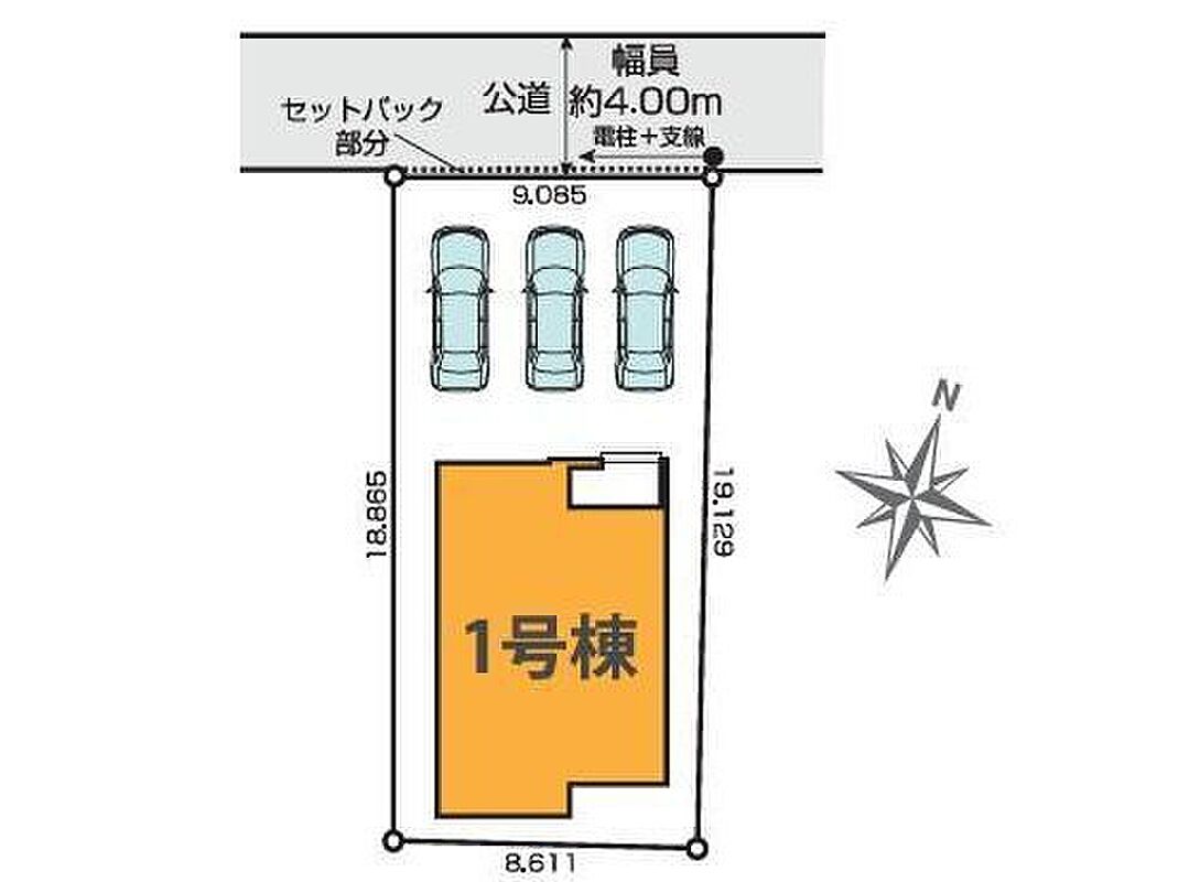 | 駐車場 | 3台 | 道路の幅員 | 道路幅:4m、アスファルト舗装、北側4m公道 |