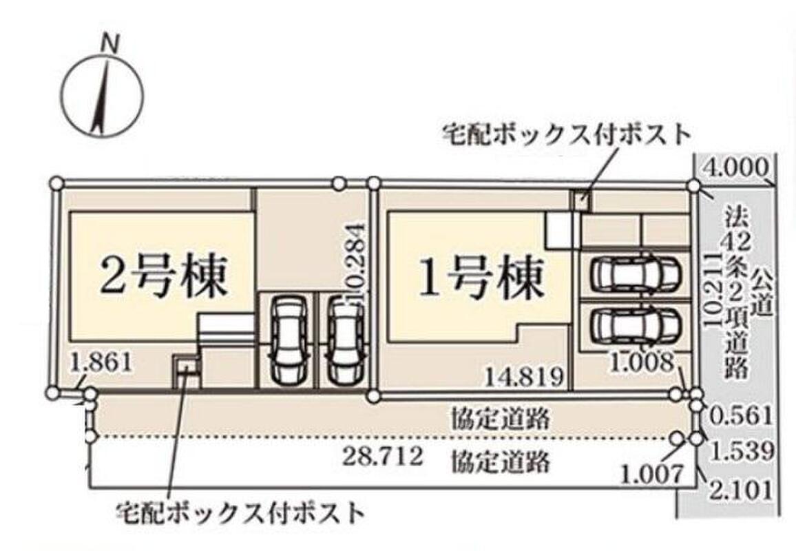 | 駐車場 | 2台 | 道路の幅員 | 道路幅:3.3m、アスファルト舗装、東側3.36m公道 |