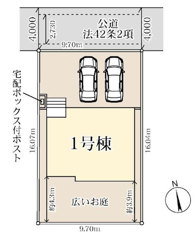 | 駐車場 | 2台 | 道路の幅員 | 道路幅:4m、アスファルト舗装、北側4m公道 |
