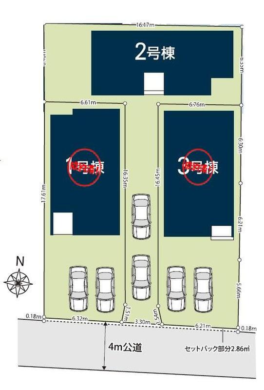| 駐車場 | 2台 | 道路の幅員 | 道路幅:4m、アスファルト舗装、南側4m公道 |