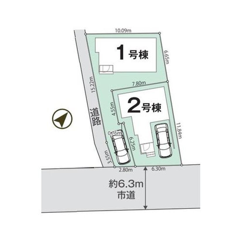 | 建物面積 | 102.05m2・113.22m2(30.86坪・34.24坪)(実測) | 土地面積 | 79.83m2・100.61m2(24.14坪・30.43坪)(実測) |