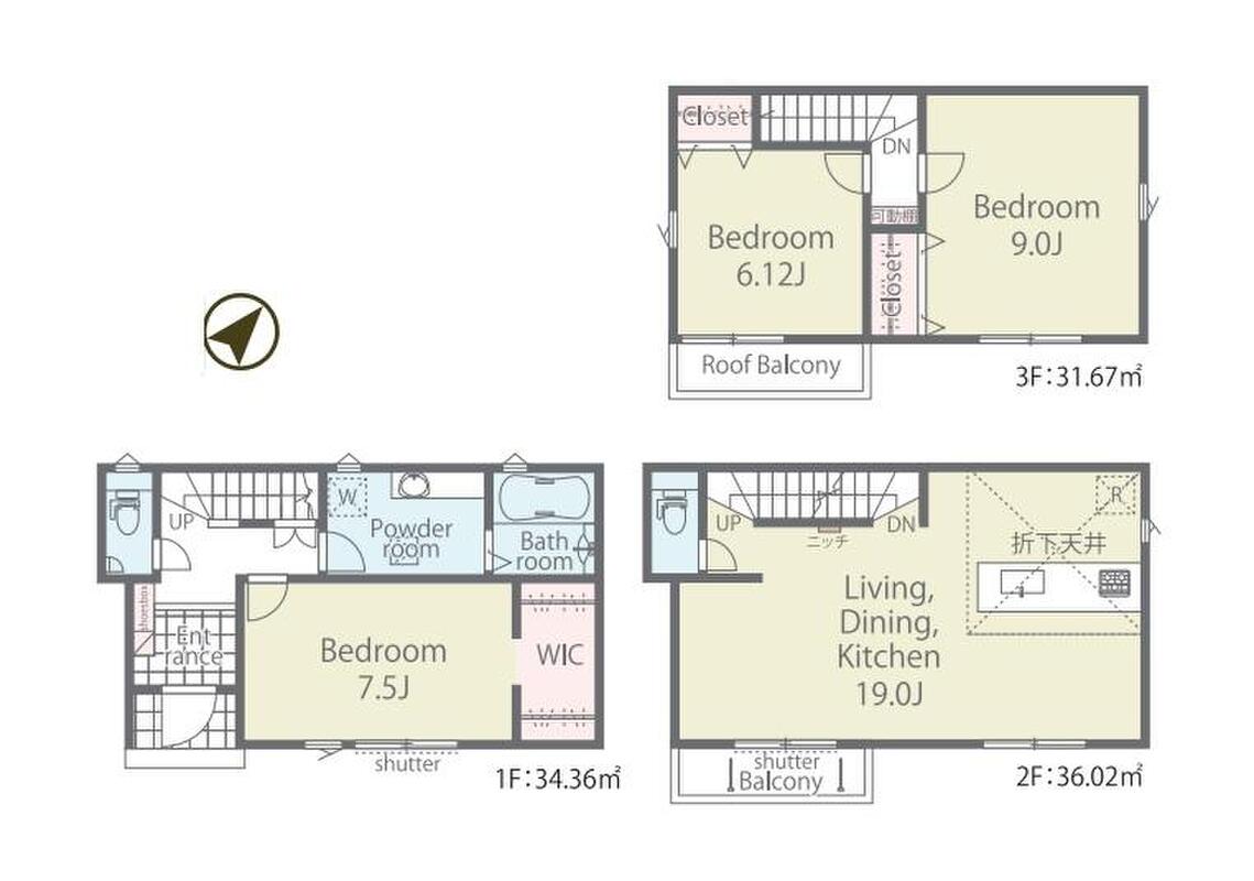 - 102.05m2・113.22m2(30.86坪・34.24坪)(実測)