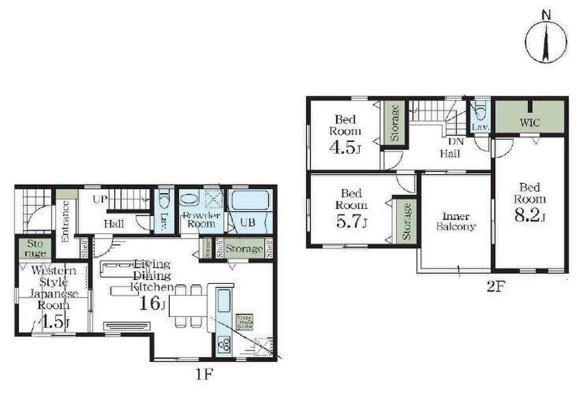 - 105.23m2・108.27m2(31.83坪・32.75坪)(実測)