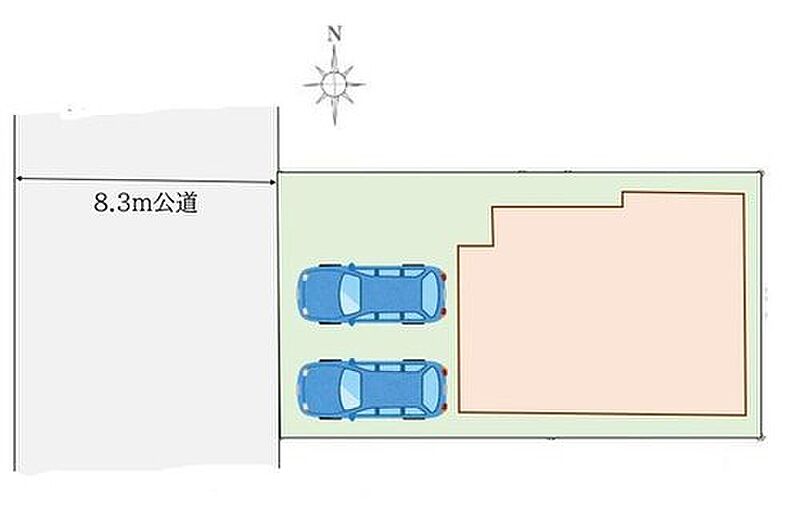 | 駐車場 | 2台 | 道路の幅員 | 道路幅:8.3m、アスファルト舗装、西側8.3m公道 |