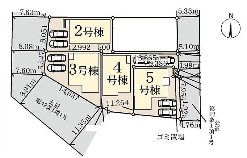 | 駐車場 | 2台 | 道路の幅員 | 道路幅:4.9m~11.3m、アスファルト舗装、東側4.99m公道、西側8.08m公道、他備考欄参照 |
