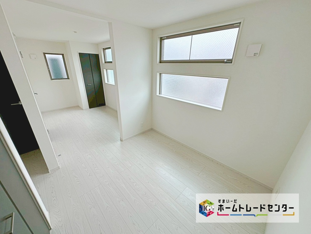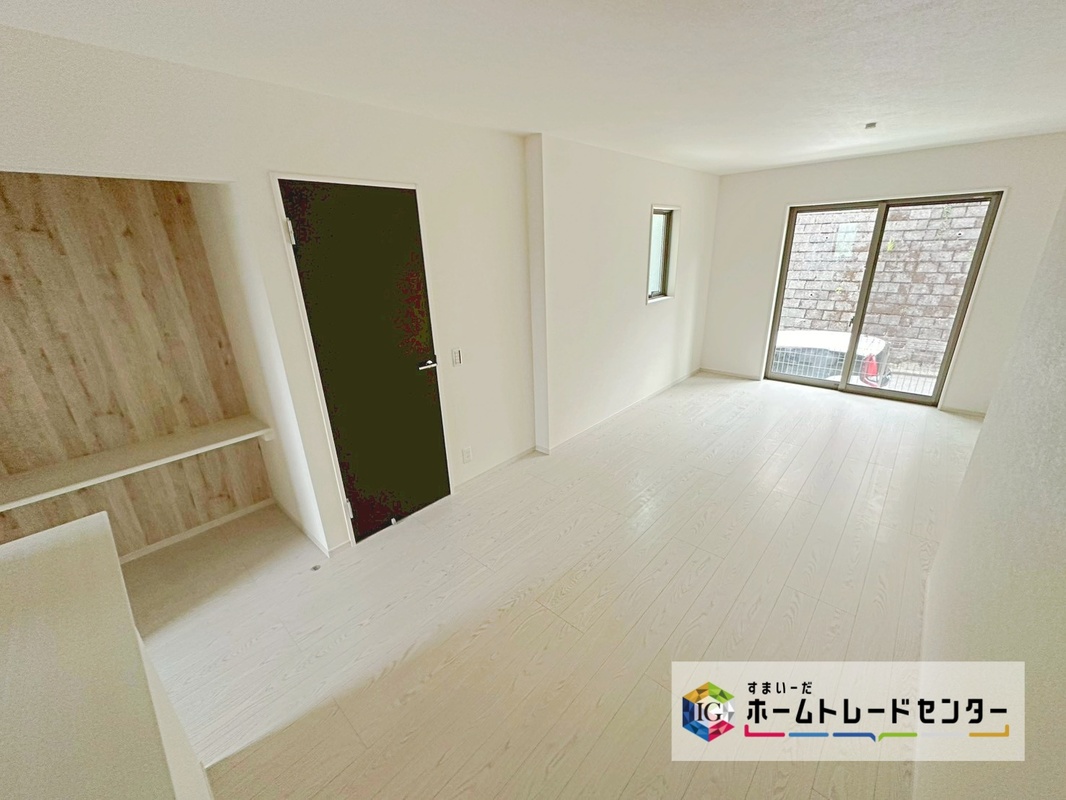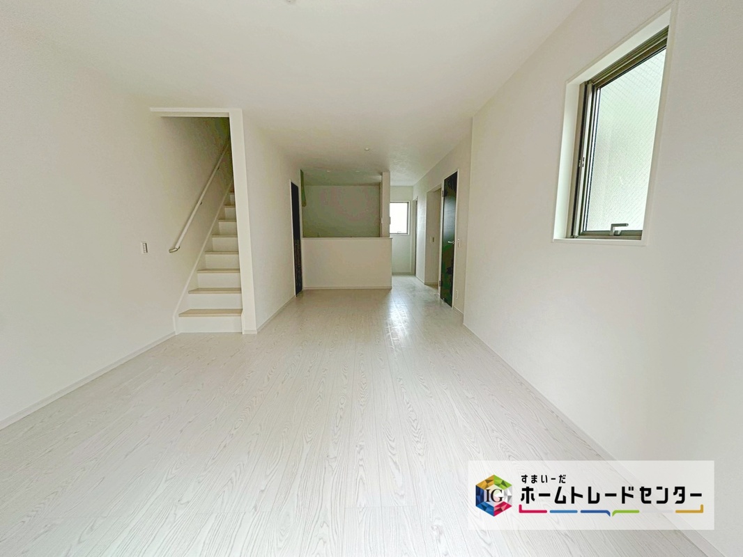 閑静な住宅街に、限定1棟 新築分譲住宅が誕生いたします☆ 車種によりますが、カースペースは2台! リビング広々17帖、ゆとりの4LDKプランです! 子育て家族に人気のリビングイン階段を採用♪