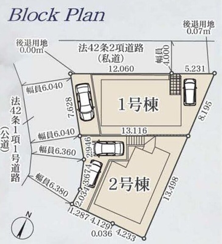 | 駐車場 | 2台 | 道路の幅員 | 道路幅:4m~6.3m、アスファルト舗装、北側私道(持分あり:0.07m2) |