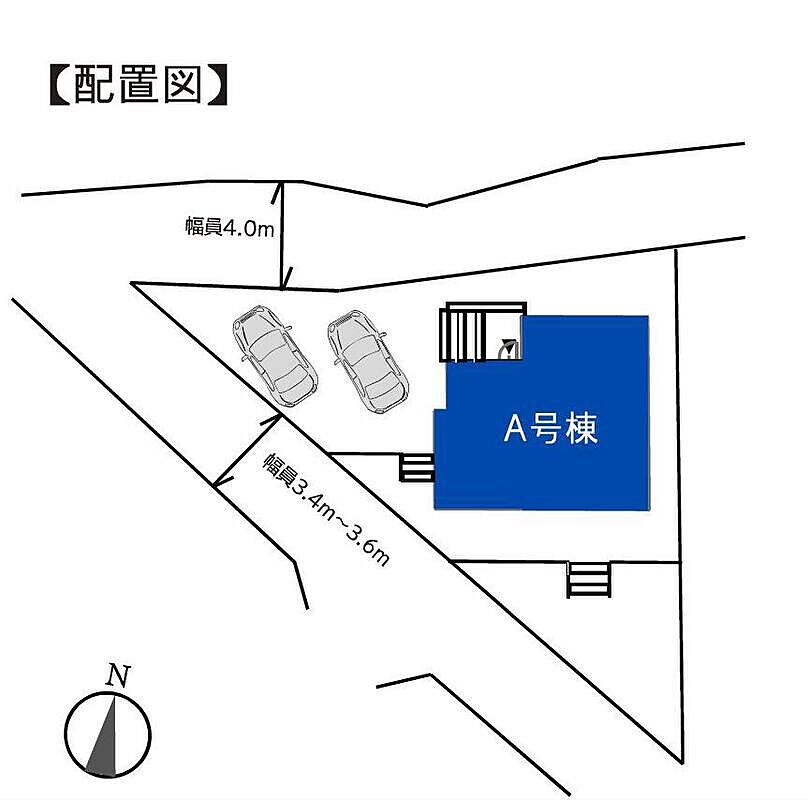 | 駐車場 | 2台 | 道路の幅員 | 路幅:3.4m~4m、アスファルト舗装 |