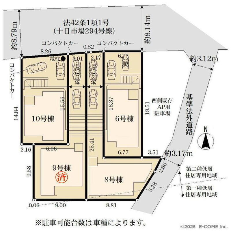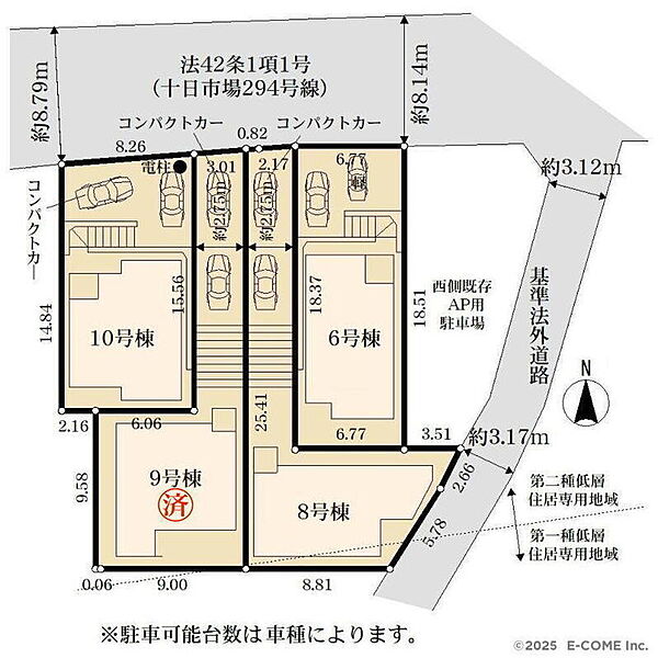 | 駐車場 | 2台(車種による) | 道路の幅員 | 道路幅:8.1m~8.7m、アスファルト舗装 |