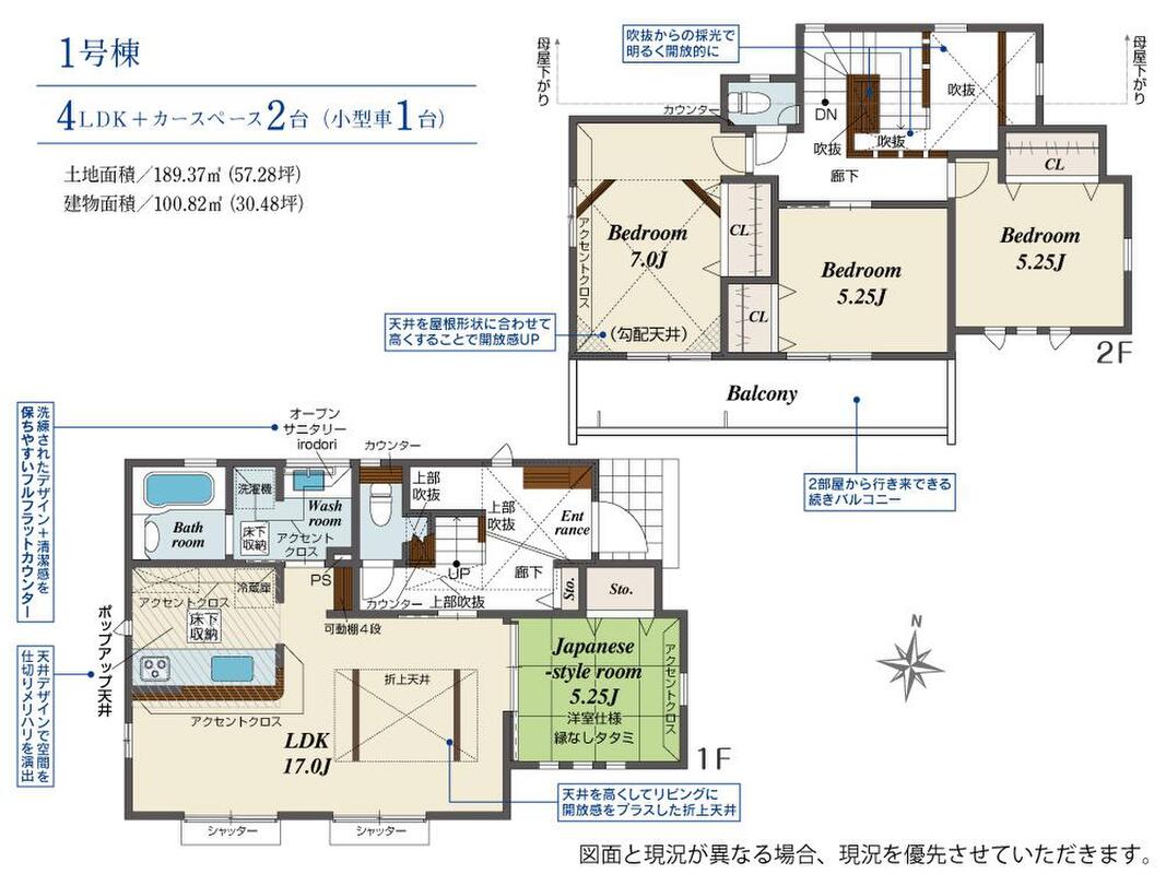 ・玄関上部吹抜付!リビング17帖、和室付、ゆとりの4LDKプラン!