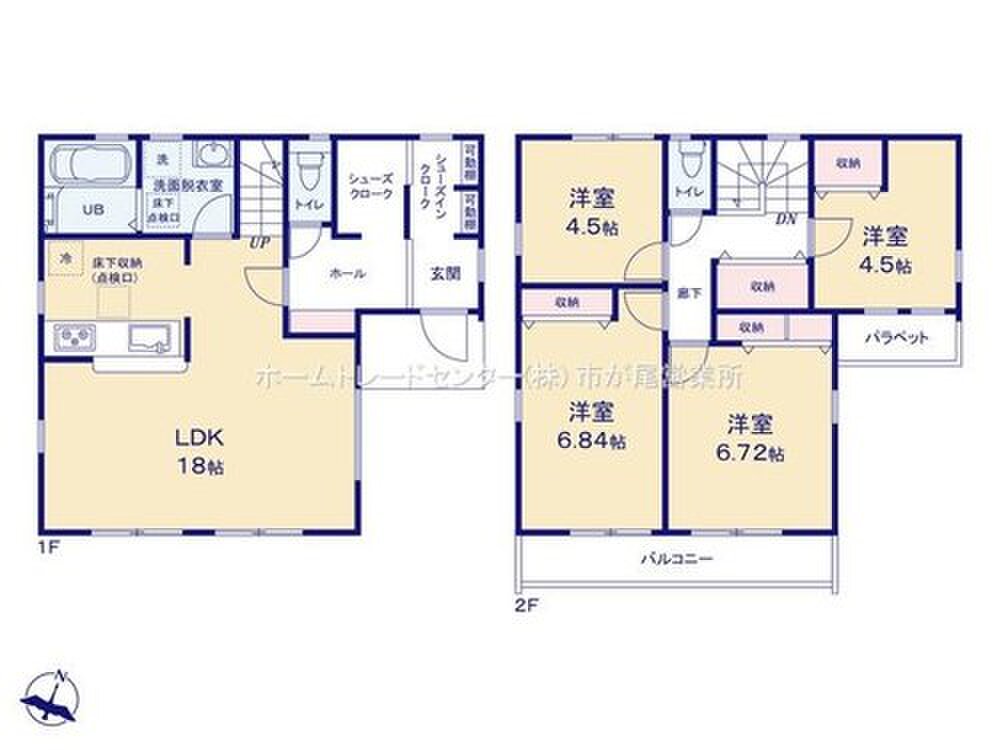 | 建物面積 | 93.36m2・100.6m2(実測) | 土地面積 | 126.86m2・137m2(実測) |