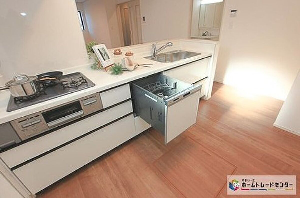 忙しい奥様の味方、後片付けもラクラクなビルトイン食洗機付き。洗い終わった食器の水切りや乾燥としても便利です。