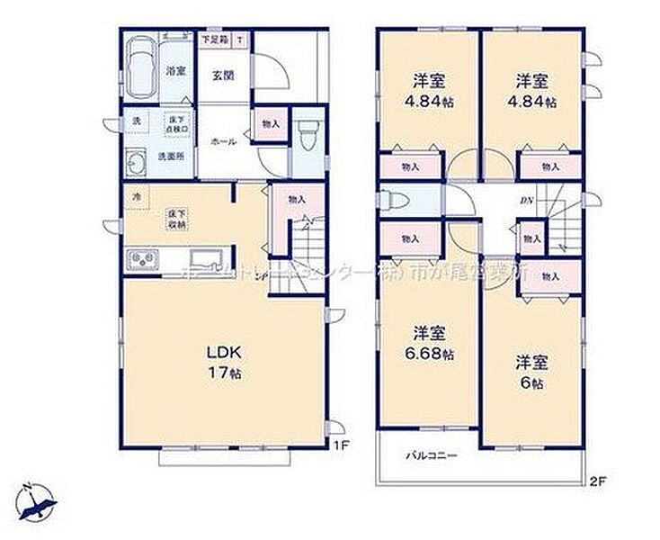 | 建物面積 | 95.64m2・95.74m2(実測) | 土地面積 | 141.74m2・156.31m2(実測) |