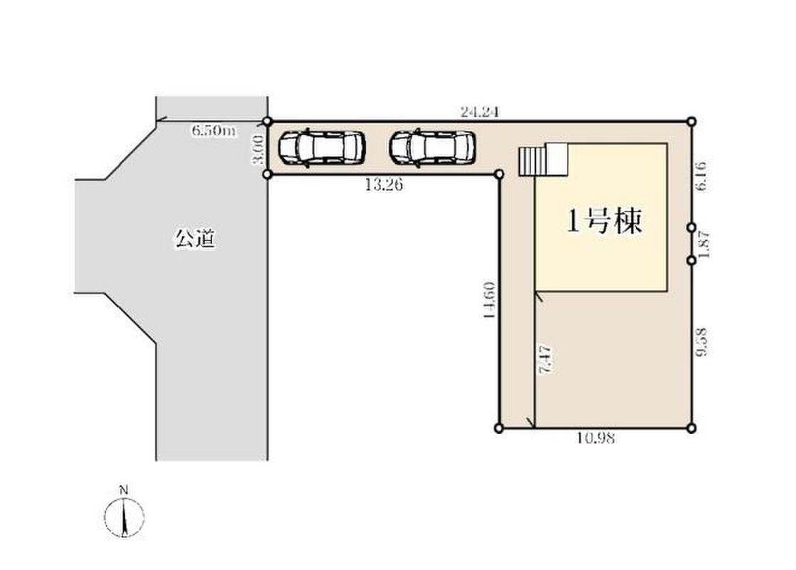 | 駐車場 | 2台 | 道路の幅員 | 道路幅:6.5m、アスファルト舗装、西側約6.5m公道 |