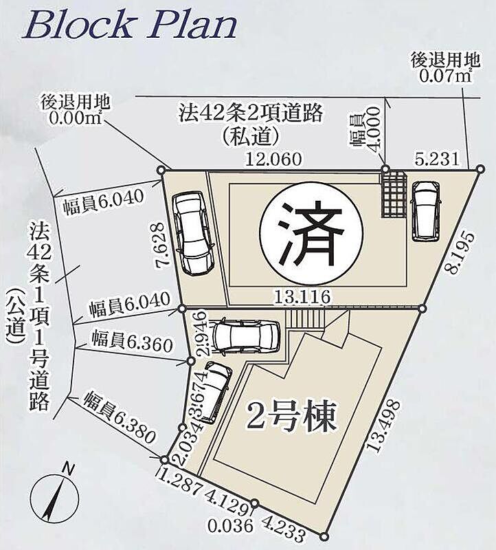 | 駐車場 | 2台(車種による) | 道路の幅員 | 道路幅:4m~6.3m、アスファルト舗装 |