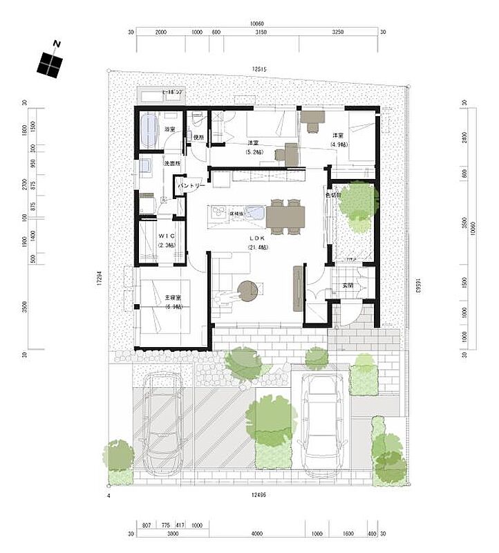 - ※完成予想図やCG合成画像は、門塀・植栽・庭・外観等、実際とは多少異なる場合があります。