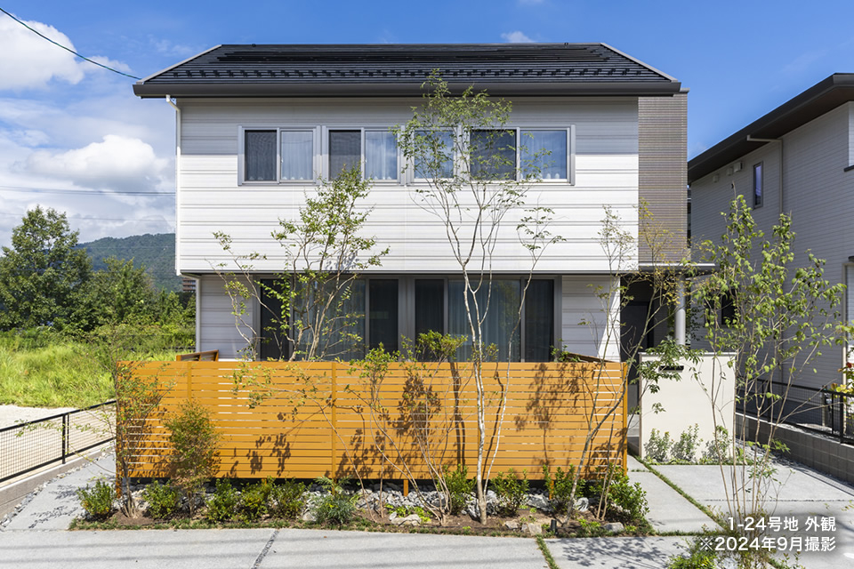 | 備考 | ※良好なまちなみの形成を図るため、「まちなみガイドライン」を作成しています。※外構・植栽・消費税は販売価格に含まれます。※水道分担金・建築確認申請・住宅性能評価申請等許認可申請費用は販売価格に含まれます。※掲載の写真・間取り・外構図の家具・備品・車はレイアウトの参考で販売価格に含まれません。※間取り・外構図は設計図書を基に作成したもので、一部異なる場合がございます。※間取図の植栽は予定種のおよそ5年後のイメージで木々の成長度合いにより形状は異なります。●売買代金以外に授受される金銭/CATV施設負担金:55000円(税込)、CATV建物内引込費用27,500円(税込)、CATV視聴料1区画あたり10,560円/年(税込) | ||