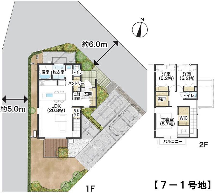 | 備考 | ●道路幅員/約5.0m、約6.0m(公道・アスファルト舗装)●建築確認番号:第24WHEC確建広00994号(令和6年12月26日)(7-1号地)、 建築確認番号:第24WHEC確建広00480号(令和6年6月28日)(7-4号地)※プランや写真に掲載されている家具・家電・小物類は、レイアウトの参考例であり、分譲価格には含まれておりません。植栽は、予定されている樹種の約5年後を想定したイメージです。販売時には苗木や緑量が少ない状態でのお引渡しとなり、植栽の成長には数年を要する場合があります。※本物件は販売中のため、ご希望区画が売約済の場合はご容赦ください。※良好なまちなみの形成を図るため、「まちなみガイドライン」を作成しています。また、建築物を新築・増改築する際の基準について定めた、景観協定が制定されています。 | ||
