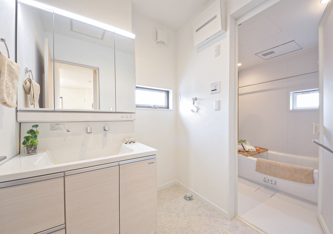浴室は浴室暖房換気乾燥機付きで暖房、衣類乾燥、涼風、換気の機能を備えた浴室。入浴を快適にするほか、雨の日や花粉の時期には洗濯乾燥に重宝します。