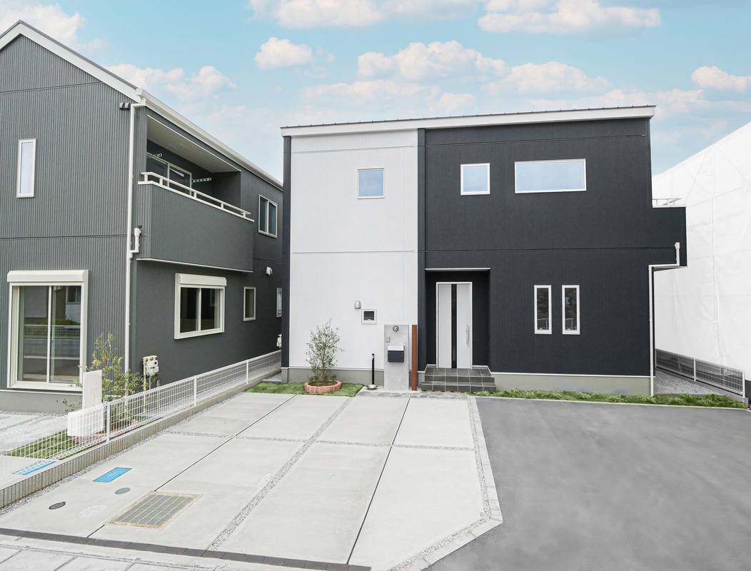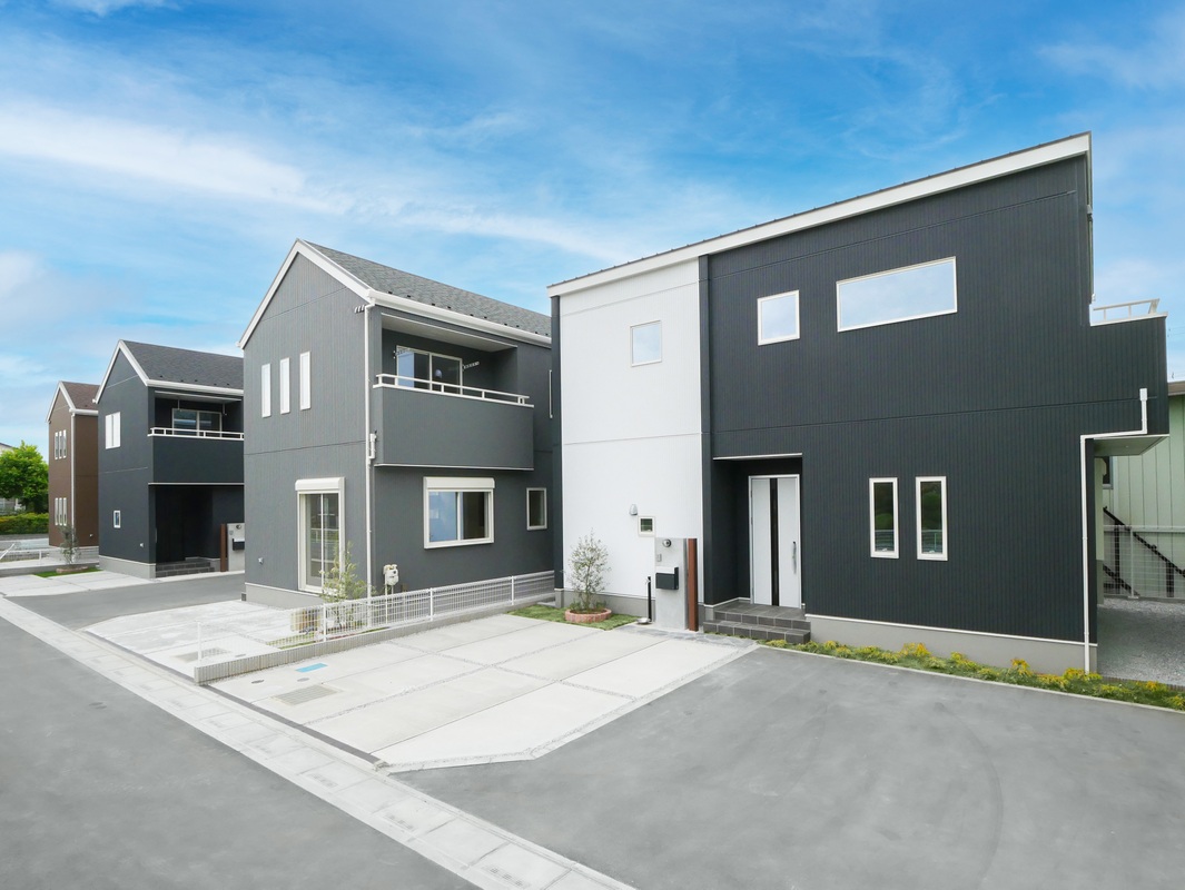 高級感のあるシンプルモダンなスタイリッシュな街並み。自然豊かな地域で暮らす全5棟の分譲地。そこに住まう人と家族を想う、景観をデザインするピュアガーデンの街づくり。