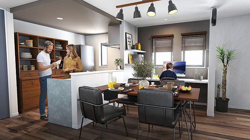 キッチン横にカウンターを設け勉強や趣味・仕事のスペースにもできます♪