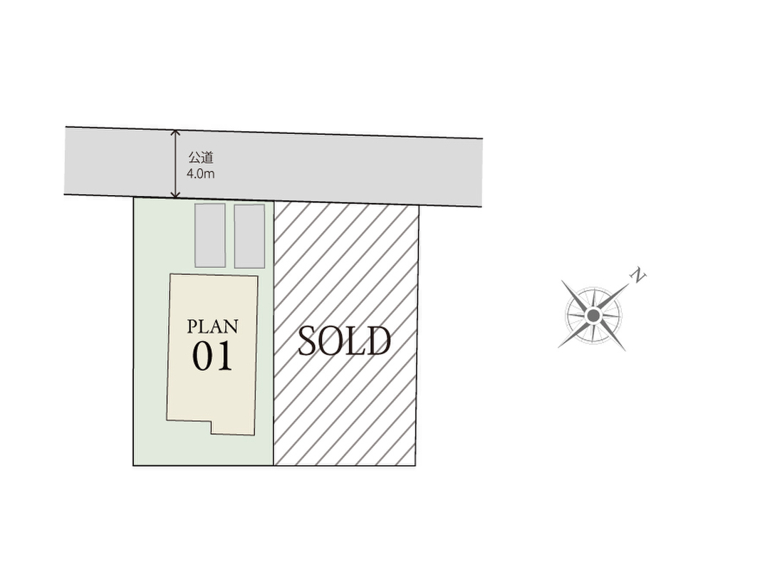 | 駐車場 | 2台 | 道路の幅員 | 北西4m |