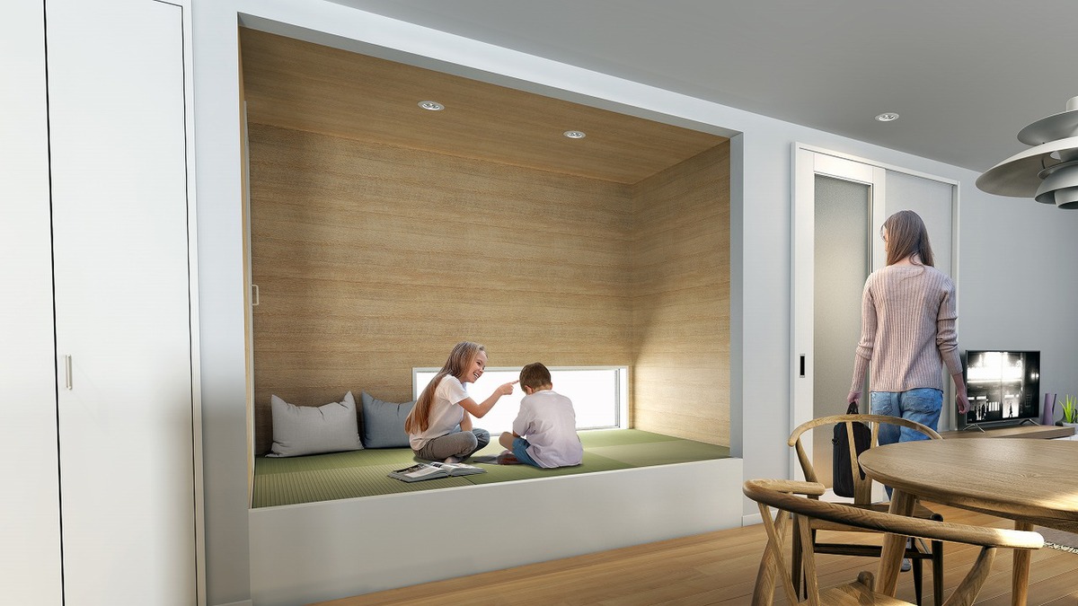 1号棟はリビング続きに畳コーナーを設けてお子様のお昼寝スペース...