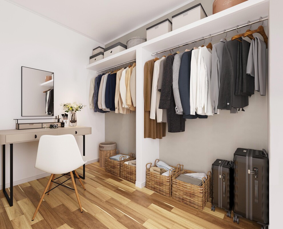 1号棟は居室にオープン収納を設け収納も魅せるインテリアのひとつ...